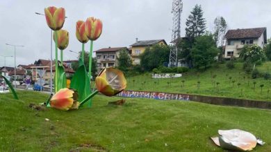 Uništena instalacija tulipana u kružnom toku u Banjaluci (FOTO)