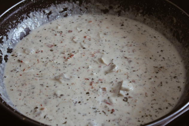 U smjesu dodajte dvije kašike prezle i začine. Ostavite u frižider dok napravite umak od gljiva.