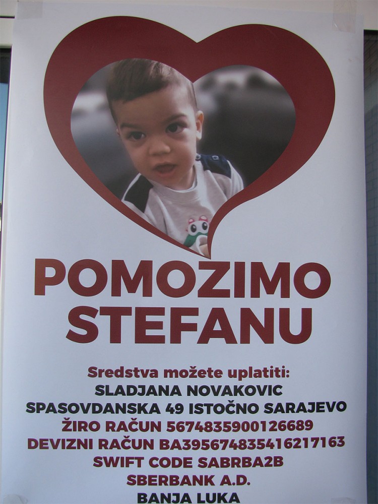 Za pomoć u liječenju Stefana Novakovića otvoren je namjenski žiro račun 567-483-59001266-89 na ime Slađana Novaković /Sberbanka Banjaluka/.