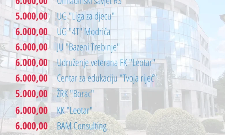 Među dobavljačima ovih usluga našli su se udruženje korisnika voda za navodnjavanje ” VUČIJA”, Omladinska organizacija “DELTA”, Organizacija kreativnog okupljanja Nevesinje, Institut za srpsku kulturu iz Nikšića, omladinska organizacija “Mreža mladih”, Udruženje “Pozitiva” itd.