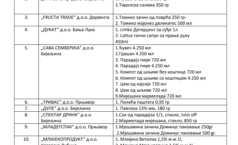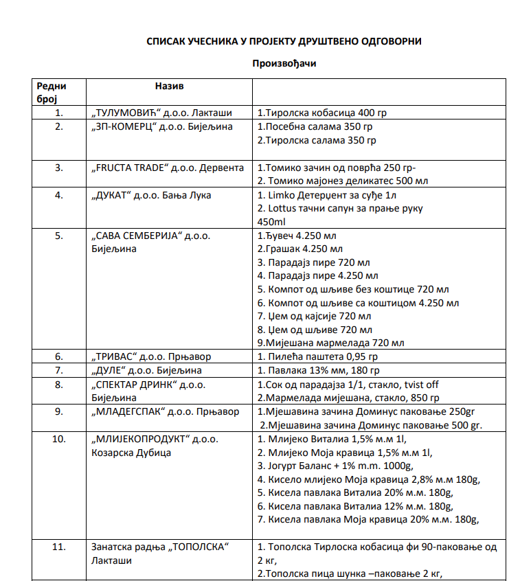 Ministarstvo trgovine i turizma Republike Srpske objelodanilo je listu 50 proizvoda oslobođenih od trgovačkih i distributivnih marži u sklopu kampanje “Društvano odgovorni”.