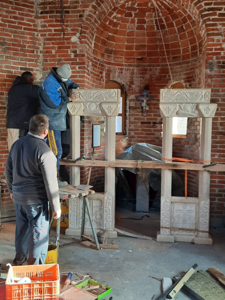 "Ikonostas je od poda do vrha krsta takođe visok blizu tri i po metra, a uradio sam ga od bilećkog kamena, s tim što sam ga, kao i ranije statuu, do Teslića kamionom transportovao iz Trebinja, gdje se sve upakuje, uvije i stigne na odredište bez ikakvih oštećenja", kaže Aleksić.