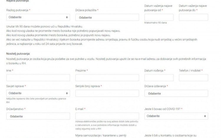 Podsjetimo, u aplikaciji morate, između ostalog, objasniti razlog putovanja i period tokom kojeg ćete boraviti u Hrvatskoj i navesti objekat smještaja.