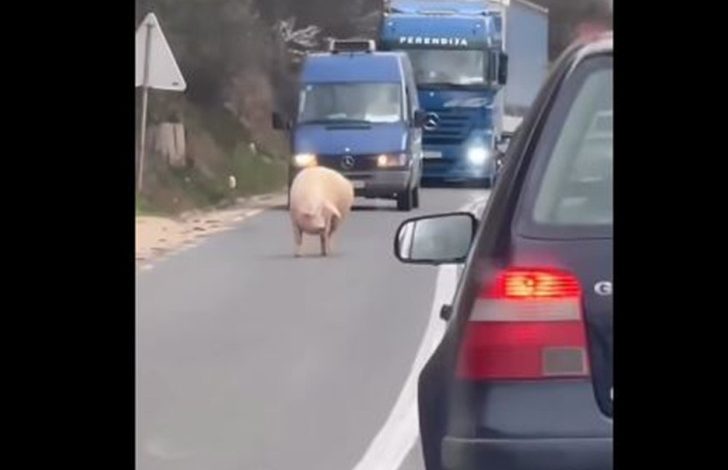 Oprez: Svinja šeta magistralnim putem (VIDEO)