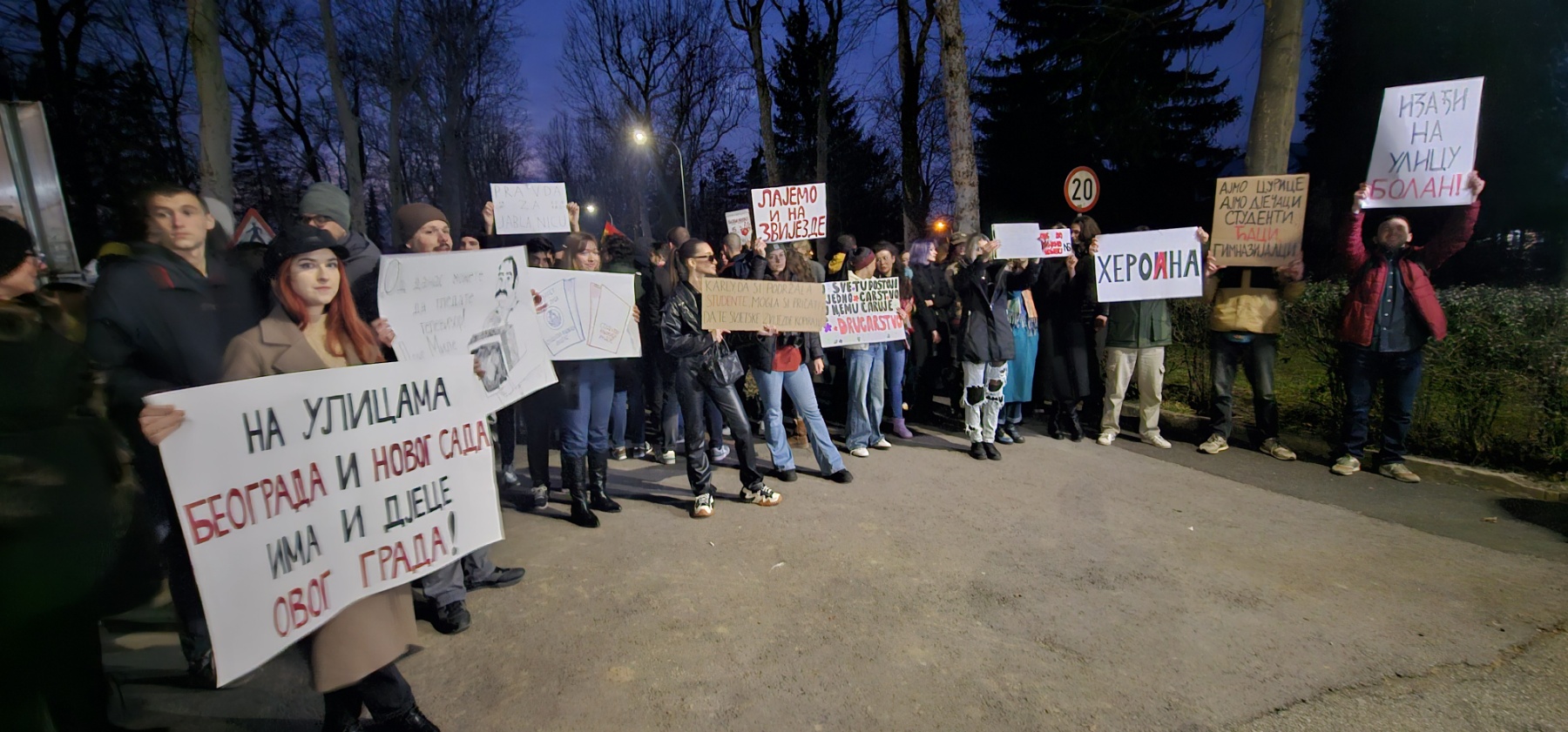 Više stotina banjalučkih studenata i građana šalju jasne poruke sa večerašnjeg okupljanja u glavnoj aleji kampusa banjalučkog Univerziteta gdje su došli da pruže podršku kolegama u Srbiji.