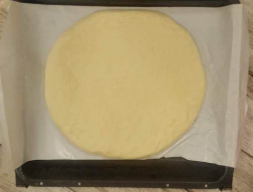 Poslije sat vremena tijesto blago premijesiti, oblikovati krug i stisnuti ga rukama, da se napravi tanka okrugla pogača.