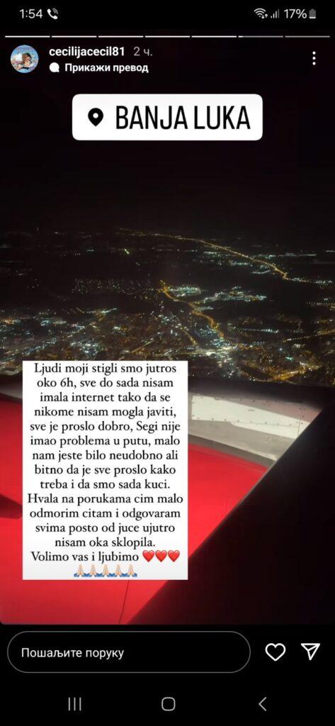 “Sve je prošlo dobro. Segi nije imao problema u putu, malo nam jeste bilo neudobno, ali bitno je da je sve prošlo kako treba i da smo sada kući”, napisala je ona.