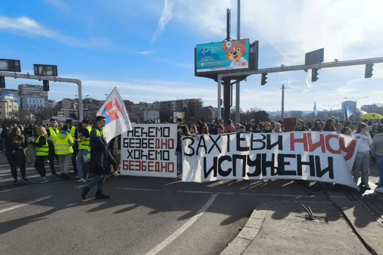Studenti koji blokiraju fakultete u Beogradu okupili su se jutros ispred Fakulteta dramskih umjetnosti odakle su pješke krenuli u Novi Sad da bi se pridružili kolegama u tom gradu koji će u subotu, 1. februara, obilježiti tri mjeseca od tragedije na željezničkoj stanici.