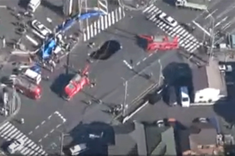 Velika vrtača progutala je danas kamion na raskrsnici u blizini Tokija, a muškarac iz vozila je spasen nakon incidenta.